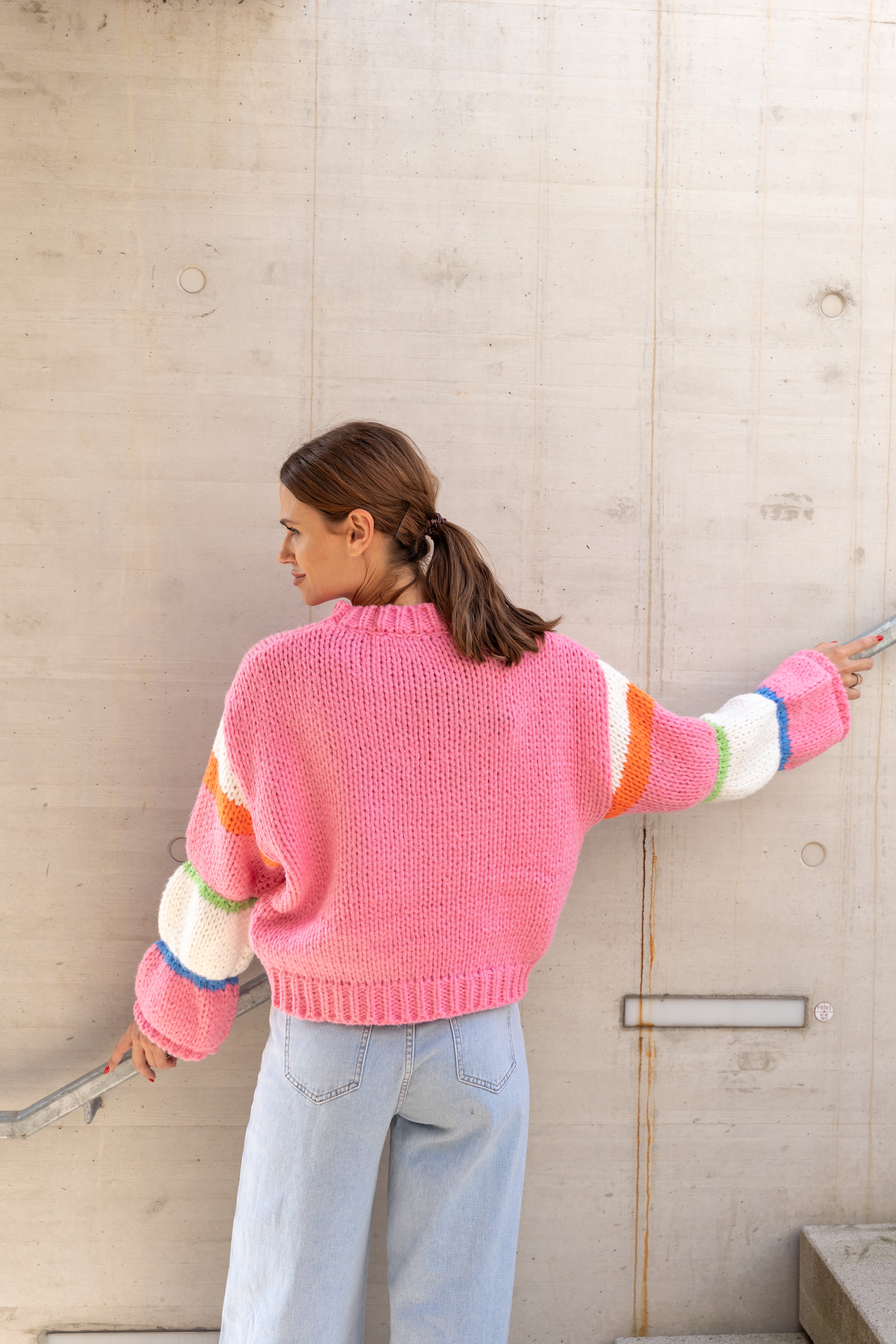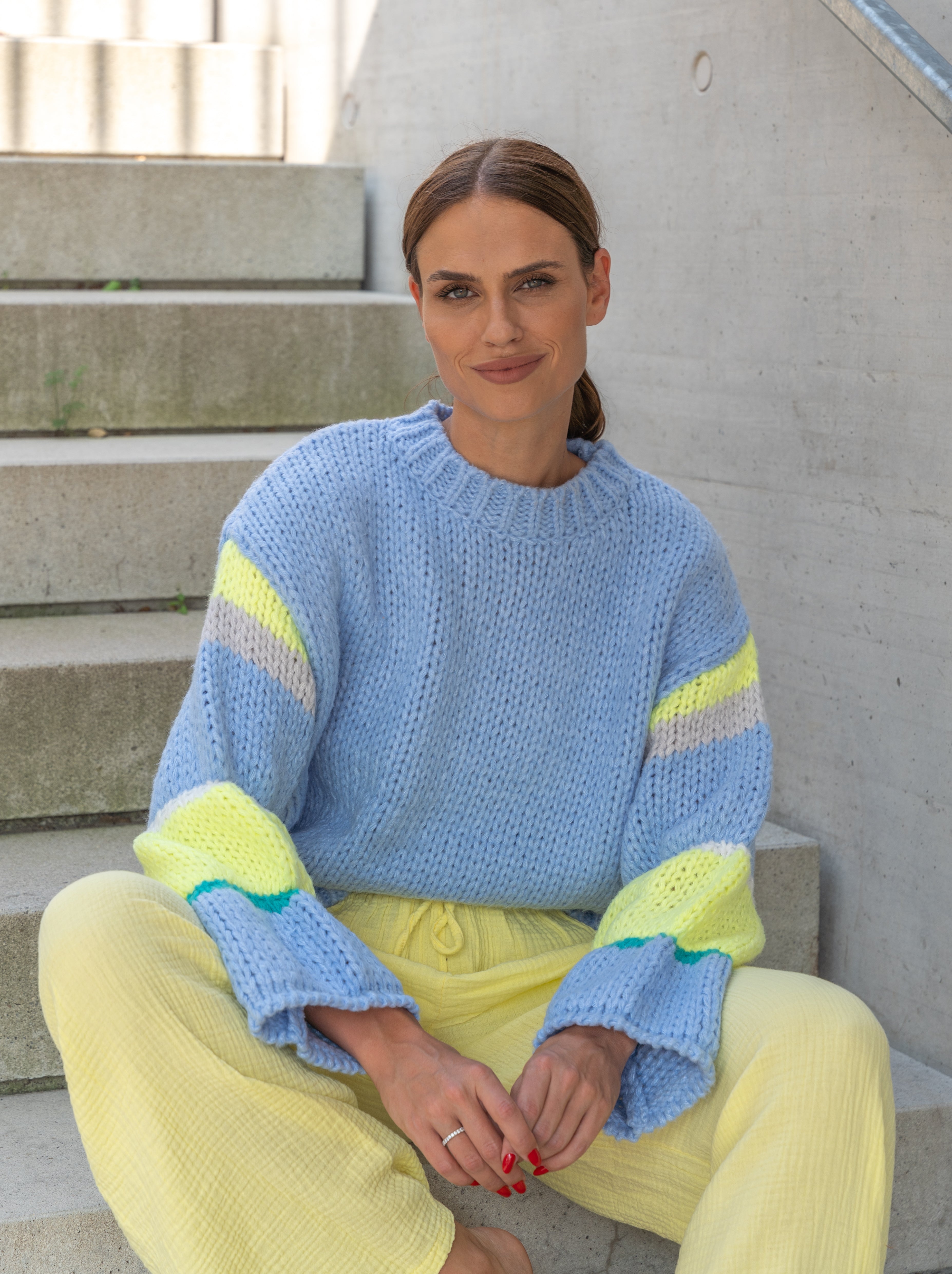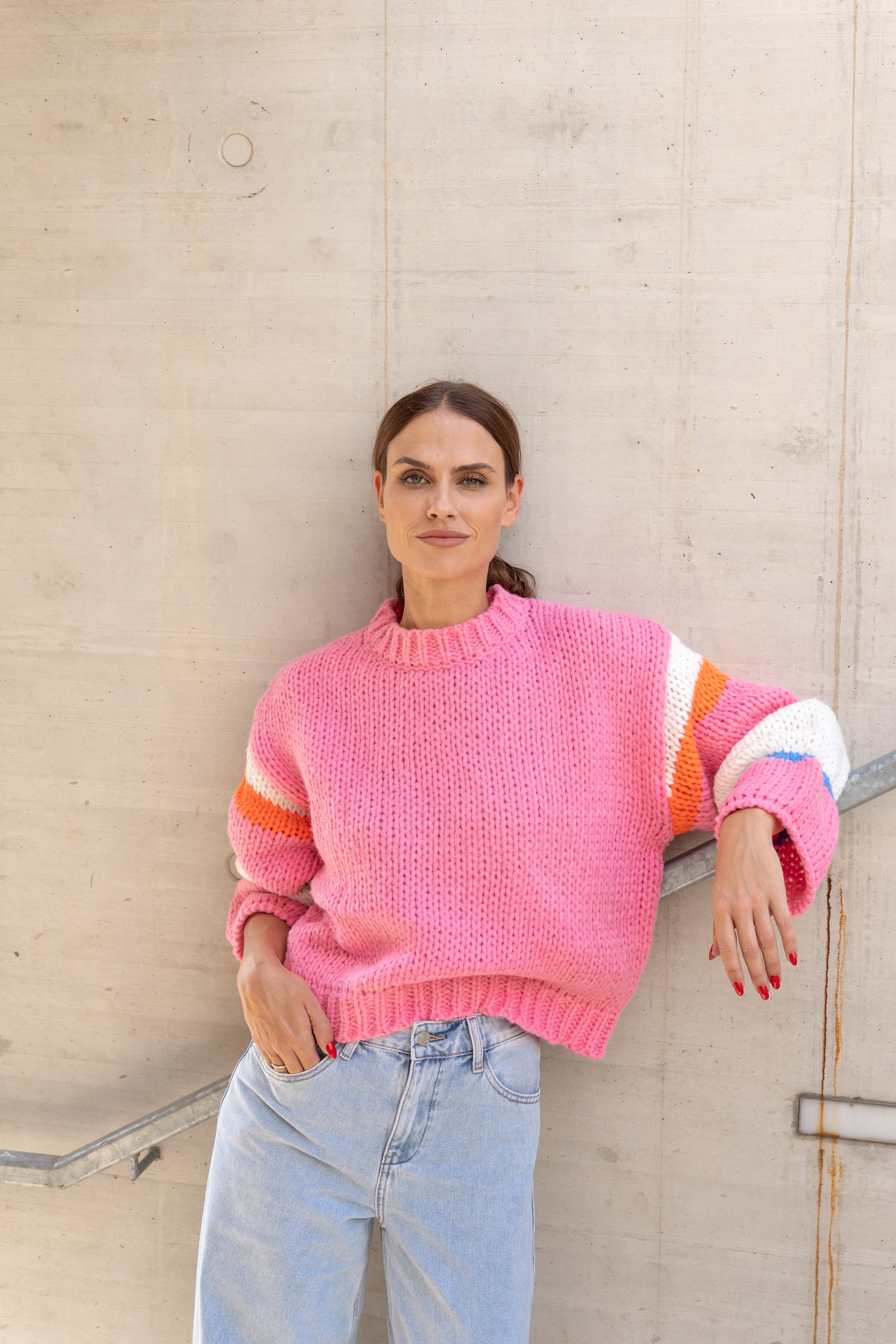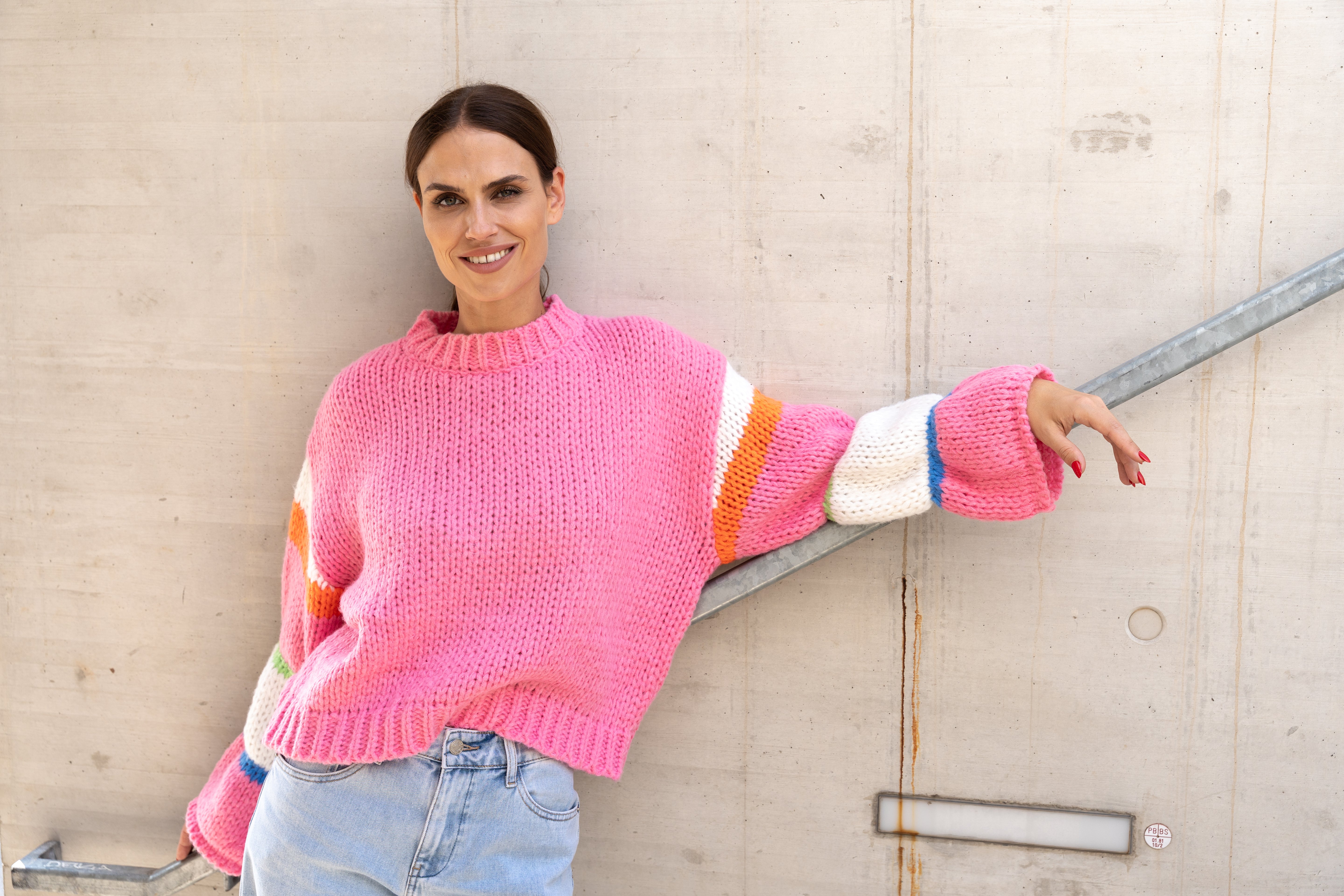 - Grobgestrickter weicher Pulli in coolen Farbkombinationen