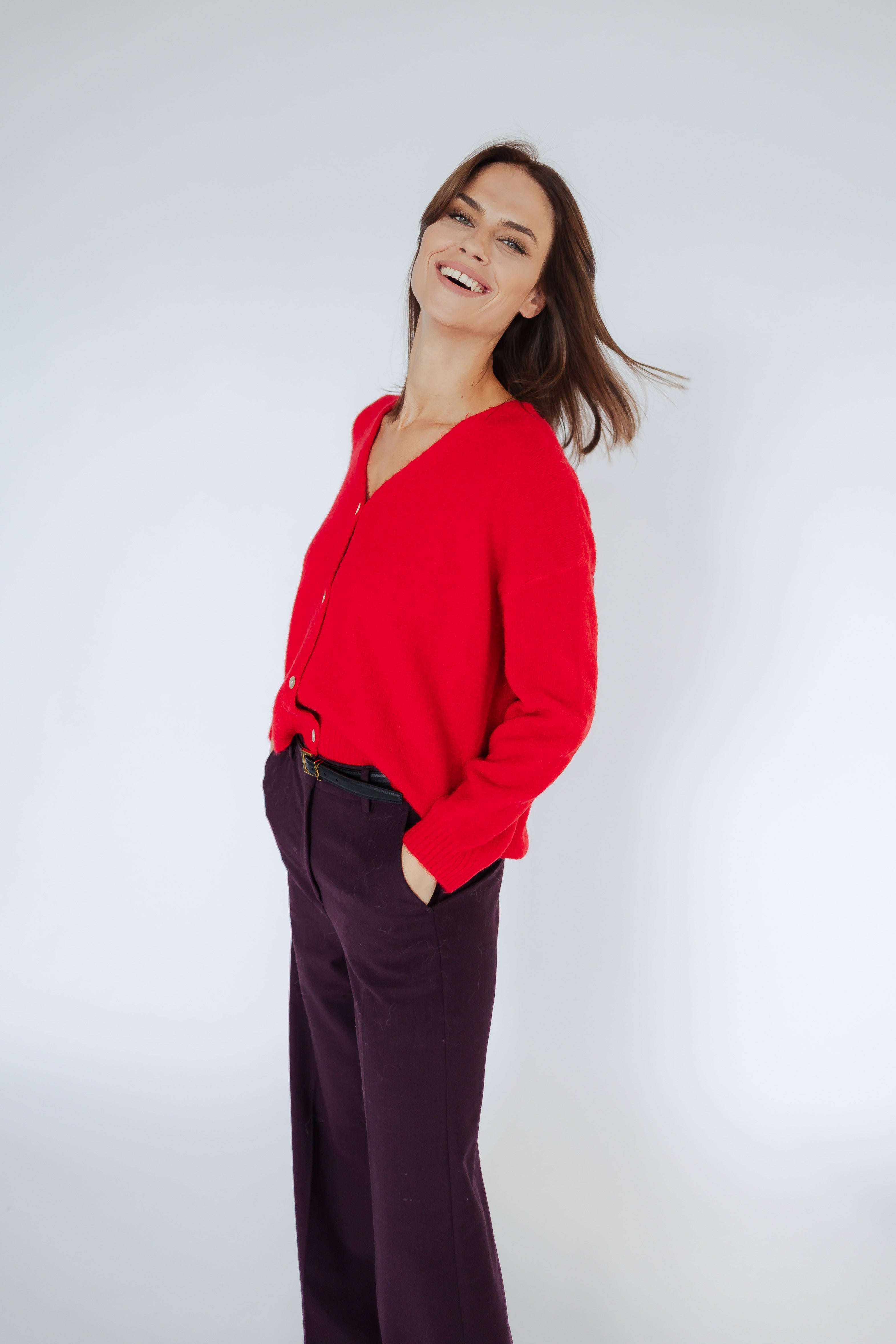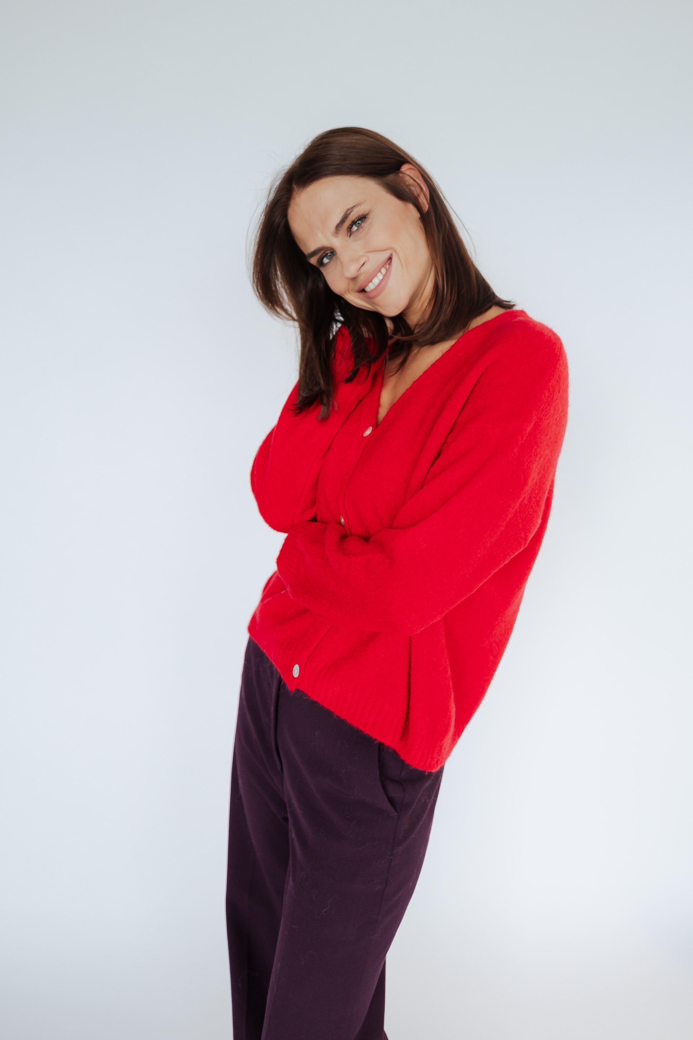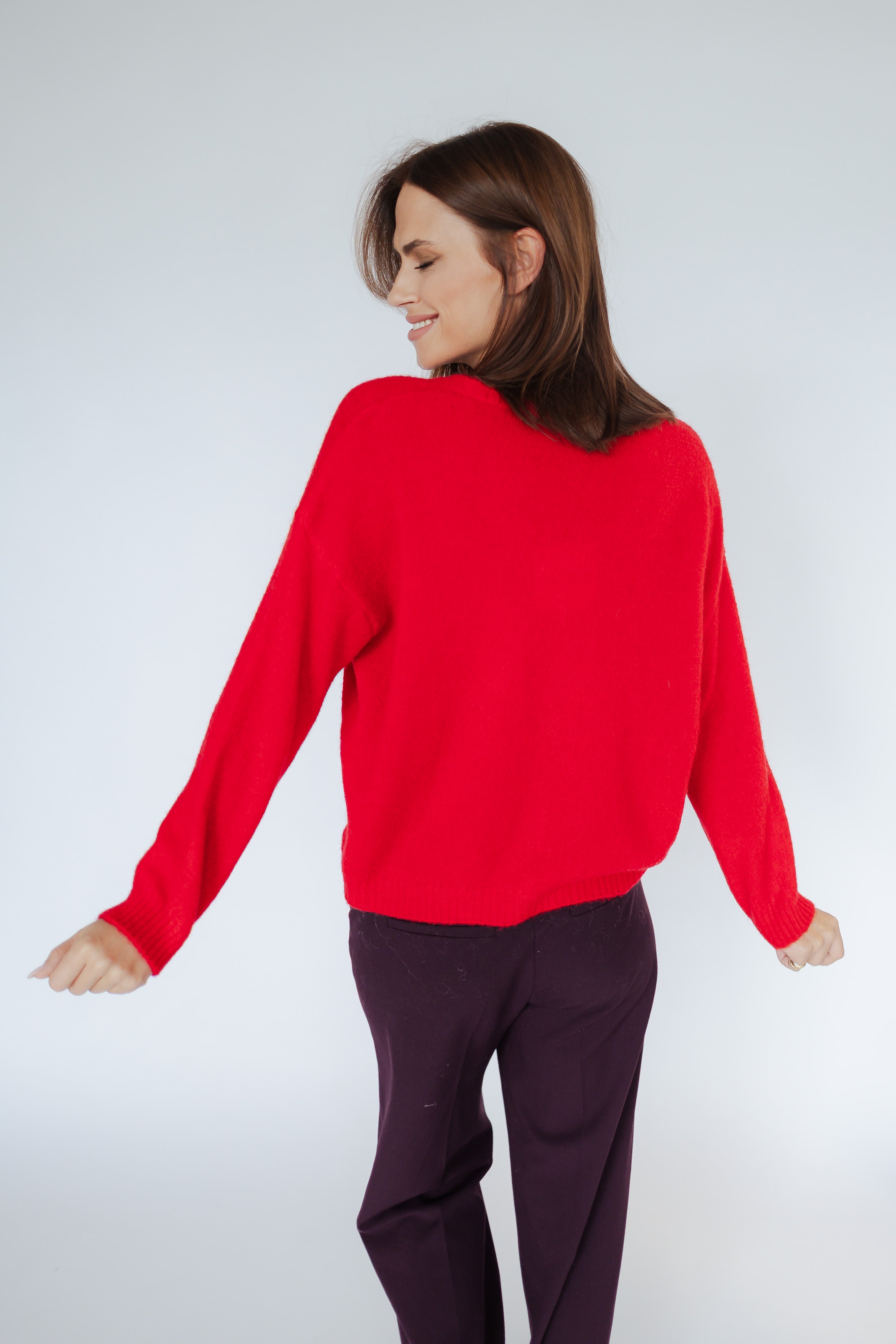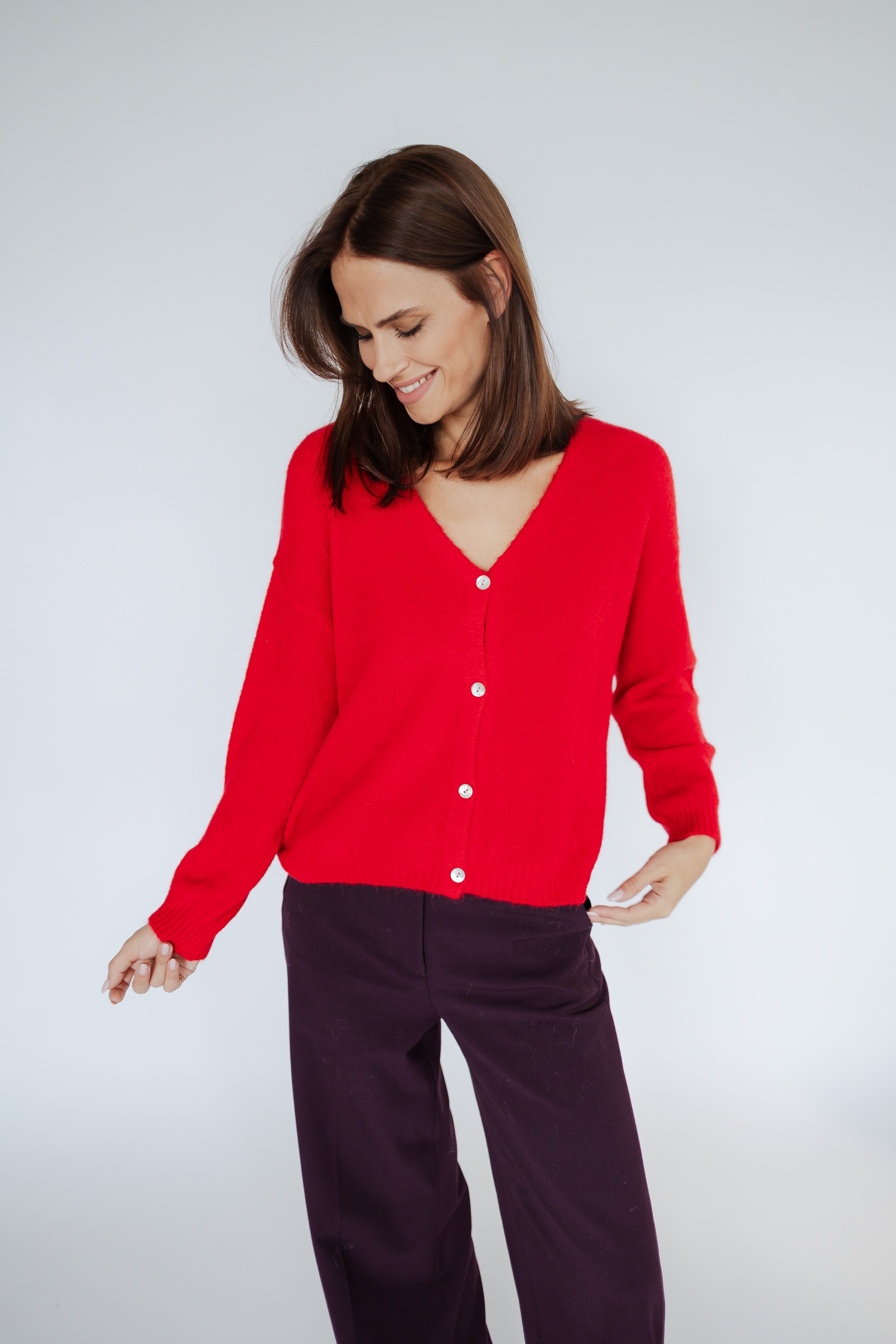 STRICKJACKE MIT V-AUSSCHNITT "DEVIL RED"