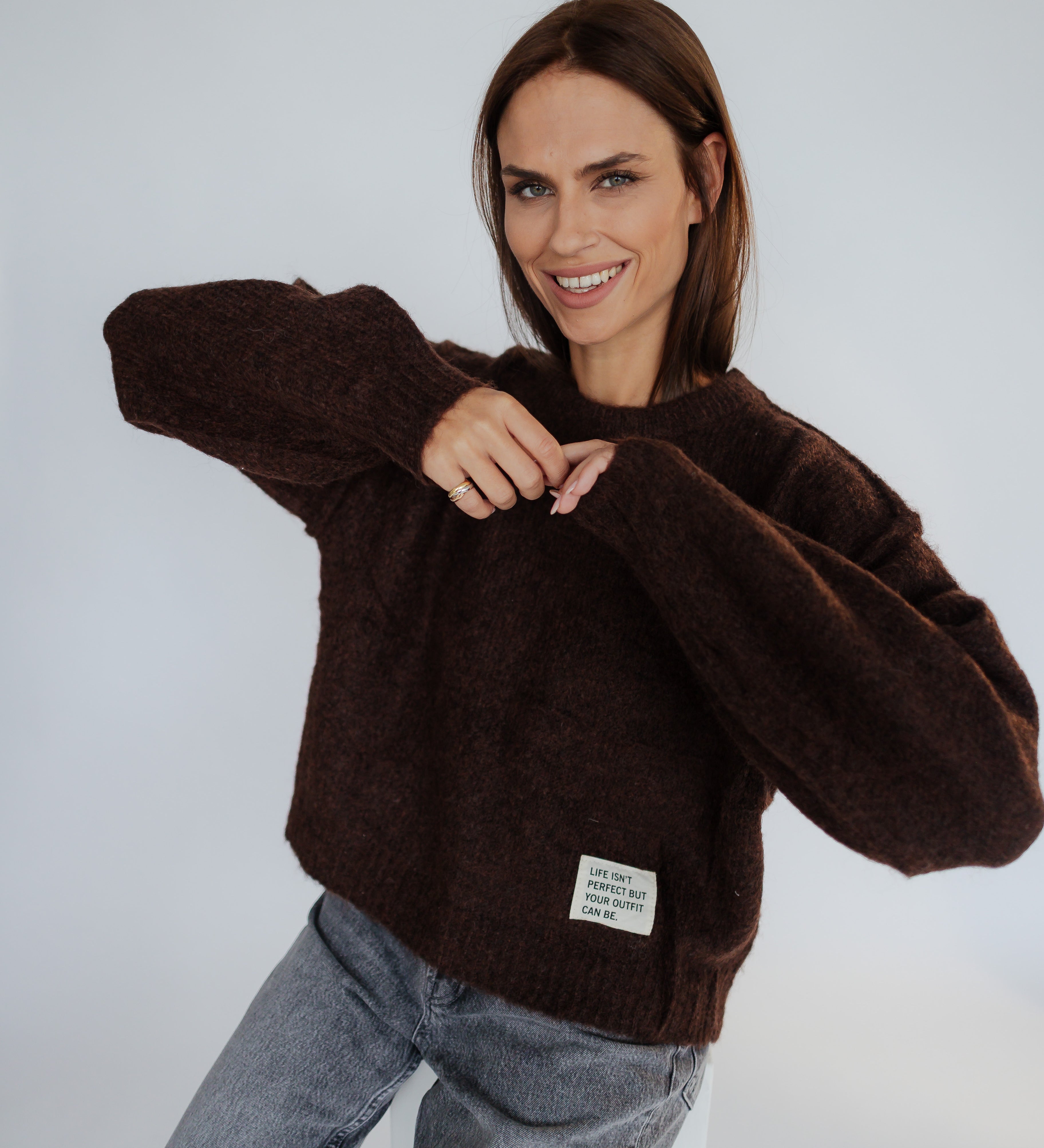 FLUFFY STRICKPULLI MIT STATEMENT-LABEL