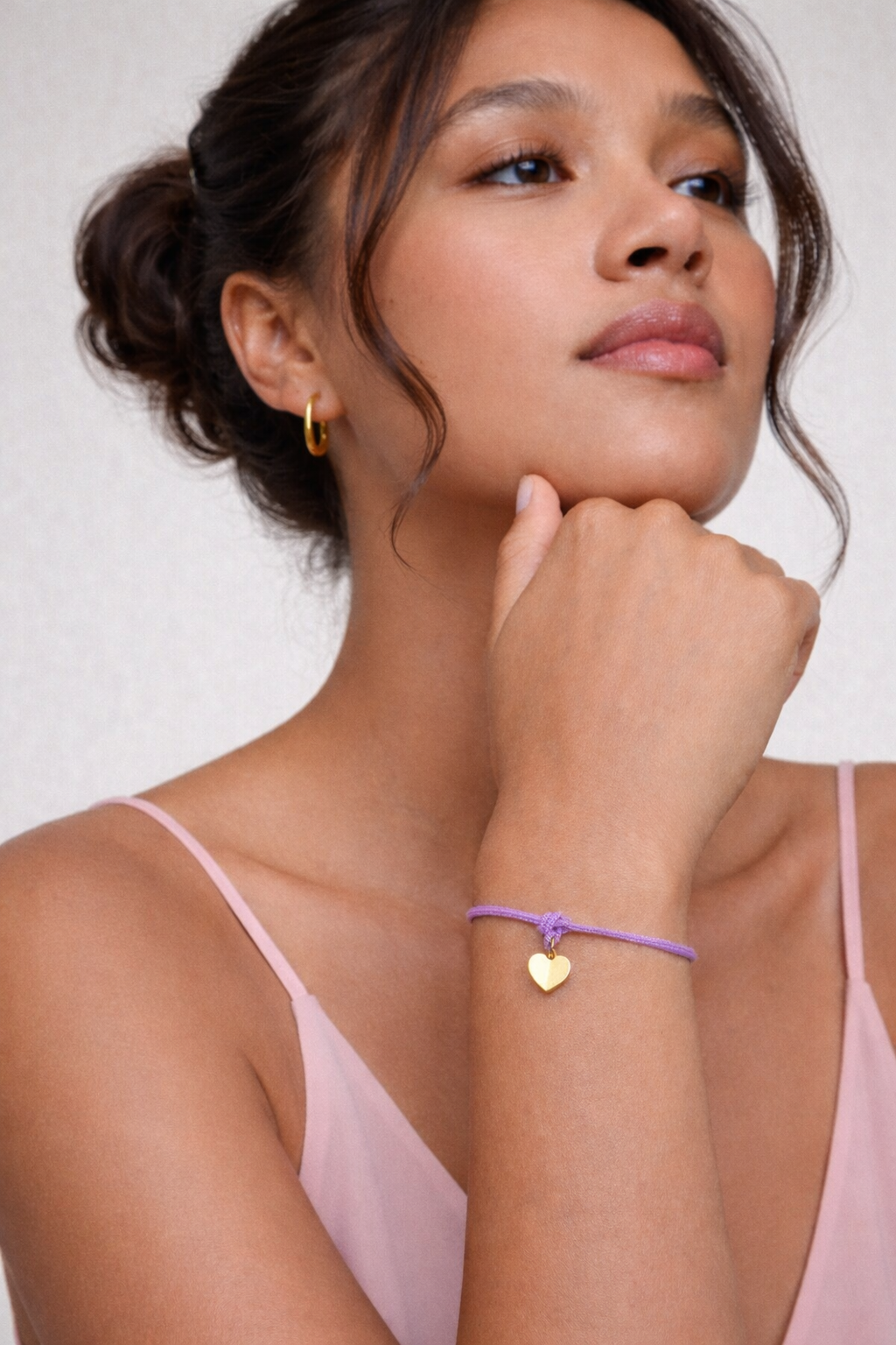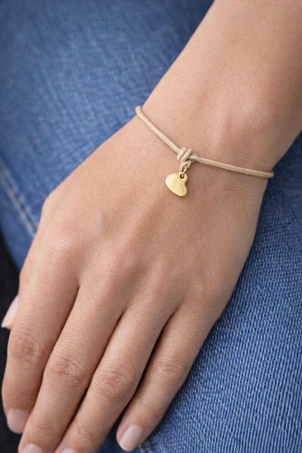 Dieses feine Nylonbändchen wird liebevoll von Hand gefertigt und mit einem kleinen Herzanhänger veredelt - ein Symbol für Nahe, Liebe und besondere Momente.