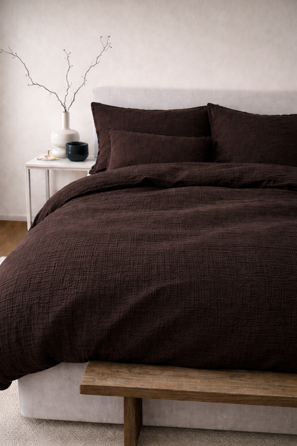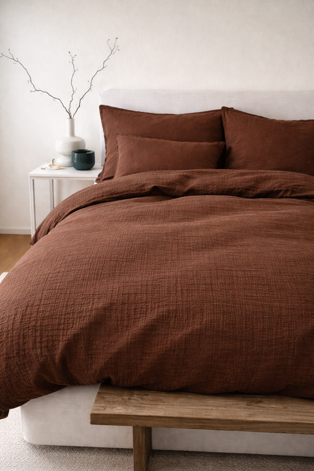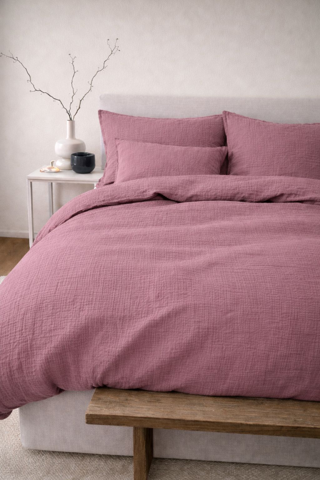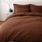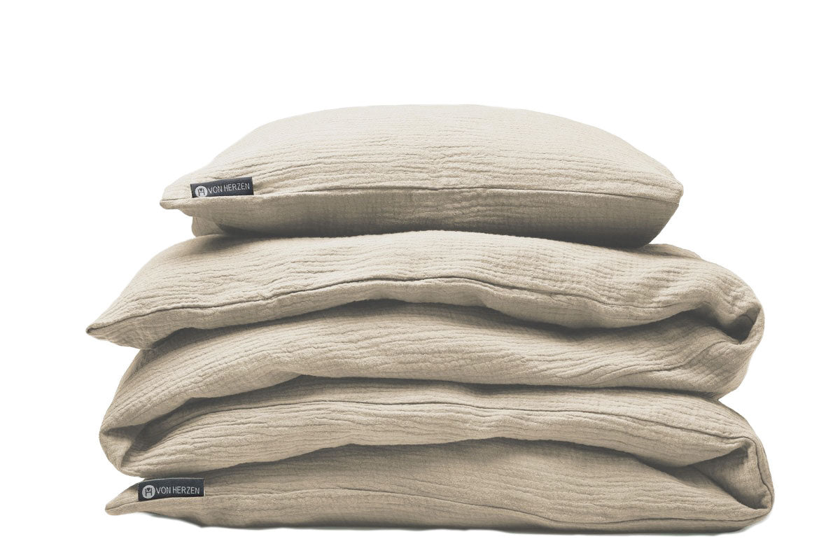 Unsere Handmade Musselin Bettwäsche ist die perfekte Ergänzung für dein Schlafzimmer und schafft im Handumdrehen eine kuschelige Wohlfühlatmosphäre.
