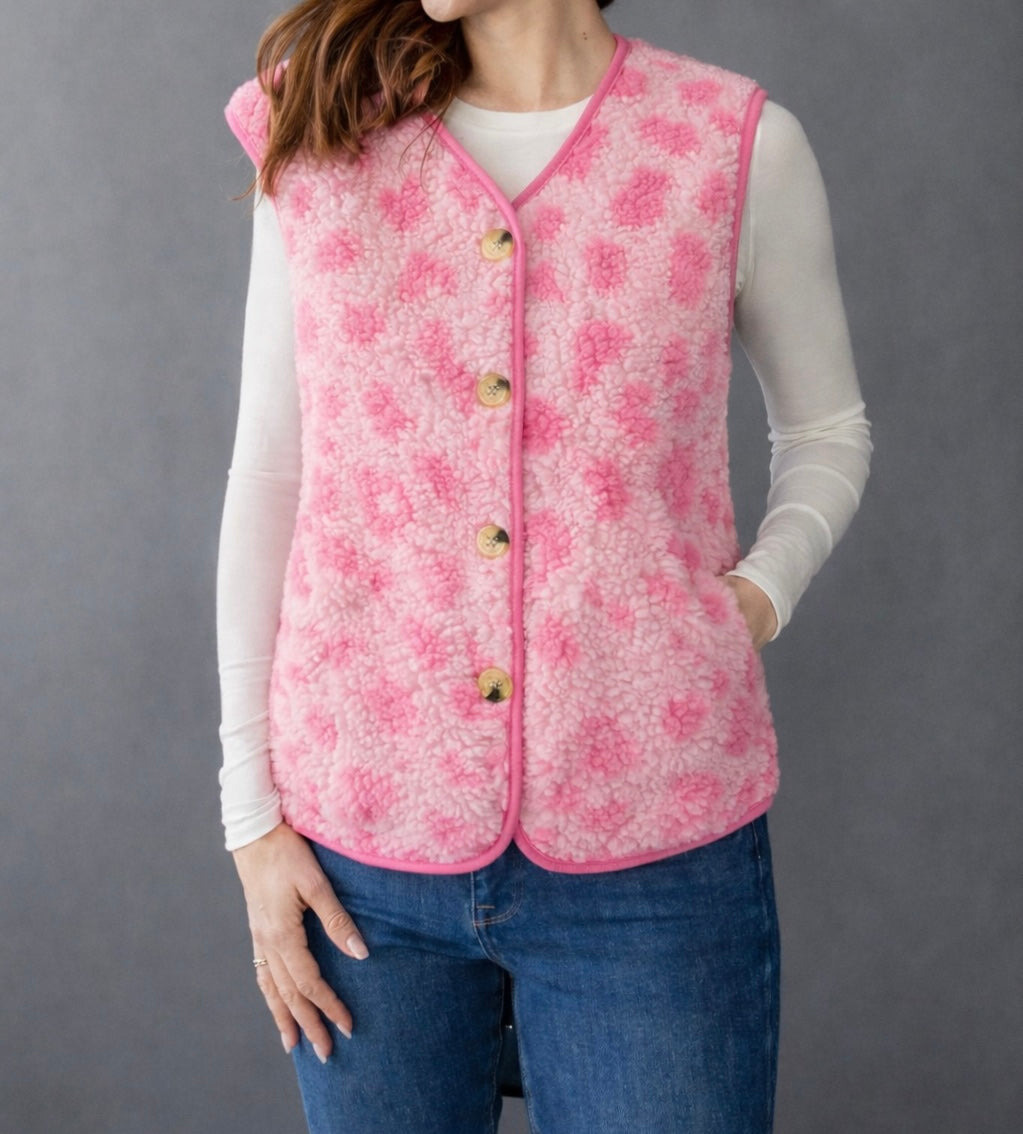 - ärmellose Teddyweste im Leolook in rot/ rosa und Pink/rosa